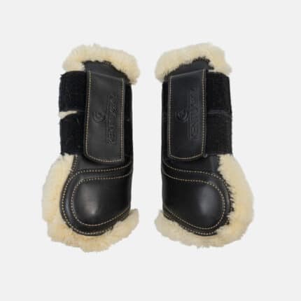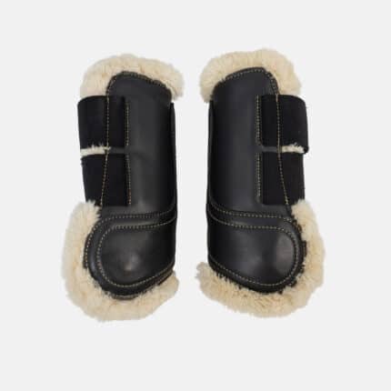 Kentucky Horsewear – Guêtres Ouvertes Cuir Sheepskin Velcro Noir