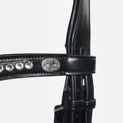 Dy’On – Bride Muserolle Large Mat Doublure Blanche Dressage Cuir Rond Collection