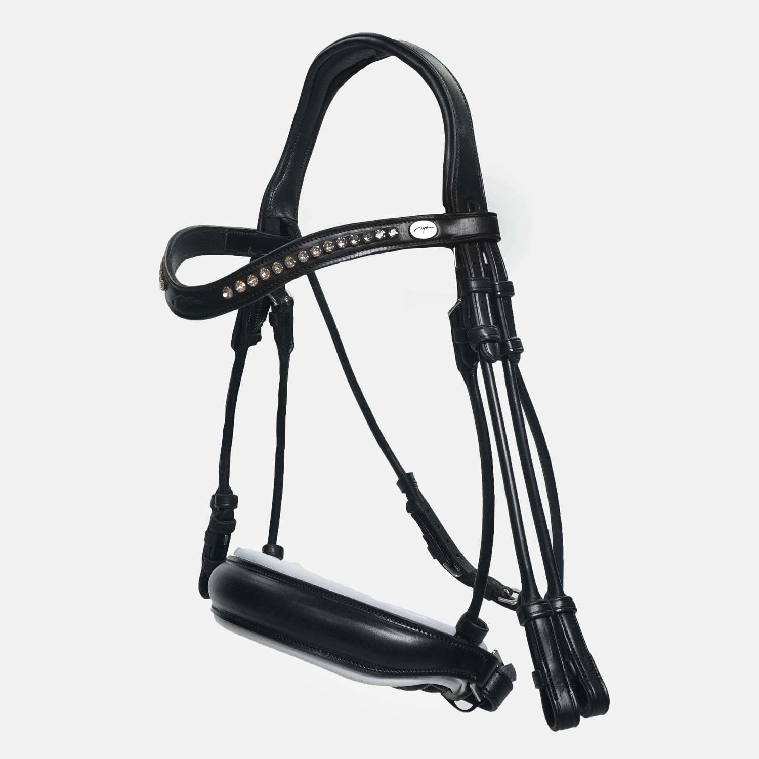 • Muserolle large anatomique (38 mm) : Conçue en cuir mat avec une doublure blanche en cuir de mouton pleine fleur, offrant un confort optimal et une esthétique élégante.