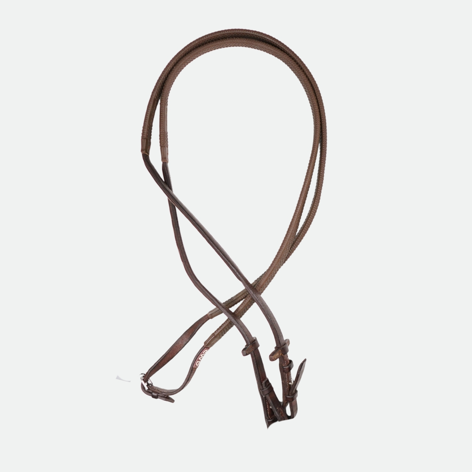 • Rênes en caoutchouc + cuir de veau tanné végétal, la partie caoutchouc apporte une excellente adhérence (grip)