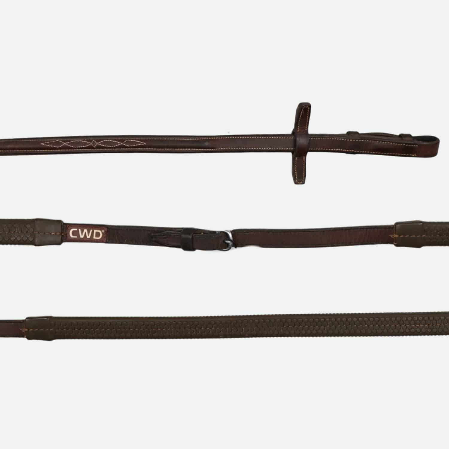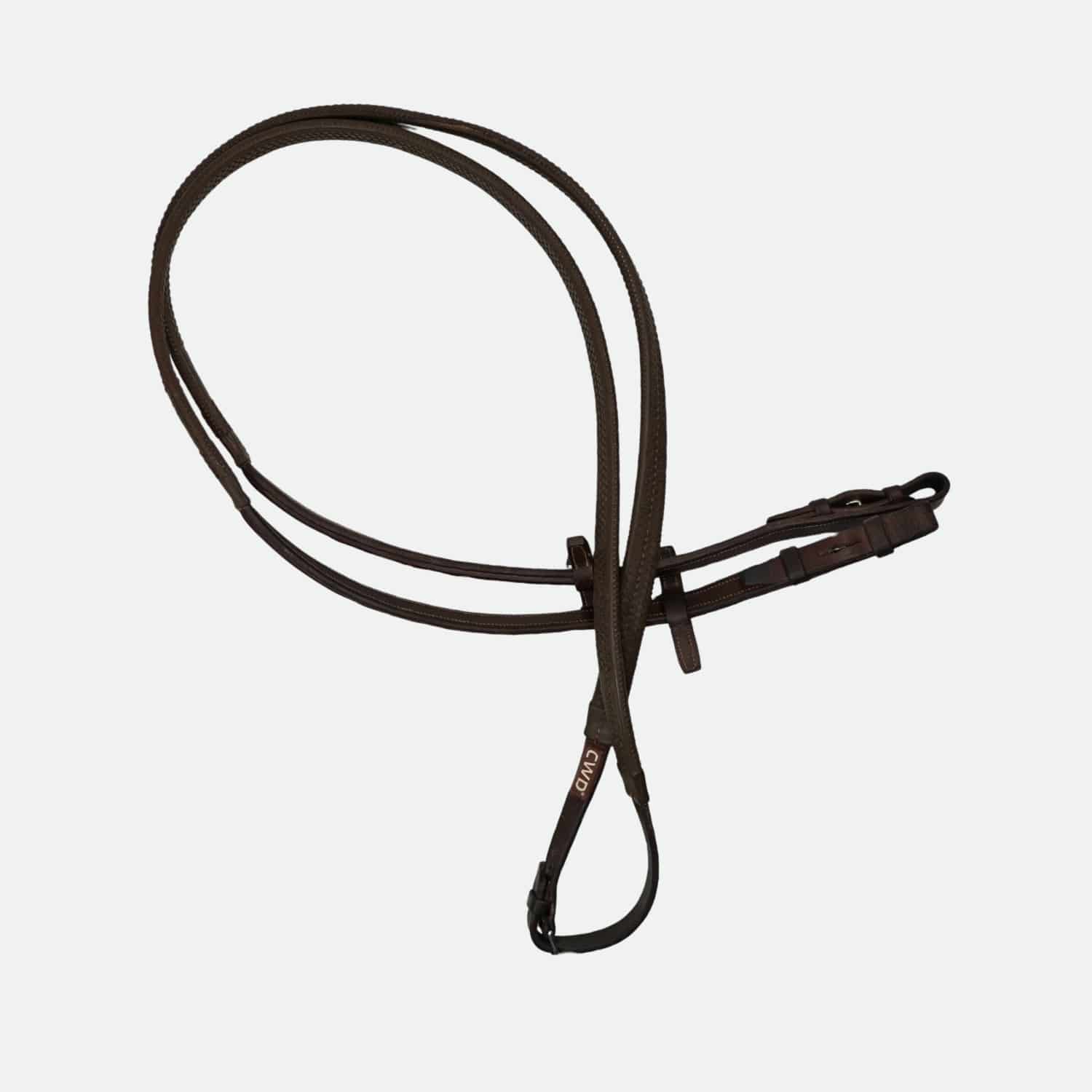 Cwd Sellier – Rênes Caoutchouc 1 / 2 Rondes Surpiquées Large Châtaigne