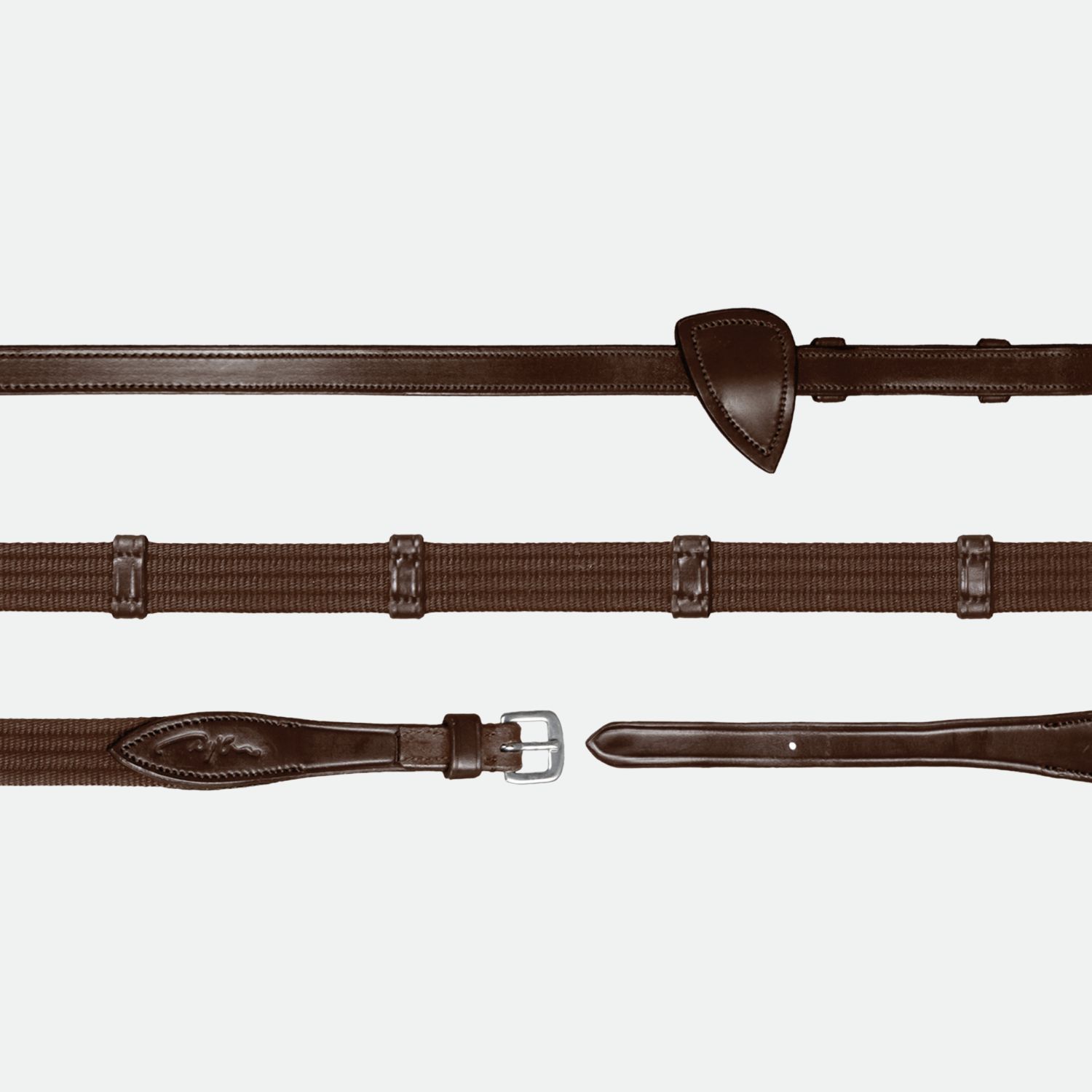 Rênes Tissu 5/8 Avec 9 Arretoirs en cuir sur la main de rênes et arrêtoirs Dy'on et compatibles avec tous les bridons et brides de la D Collection