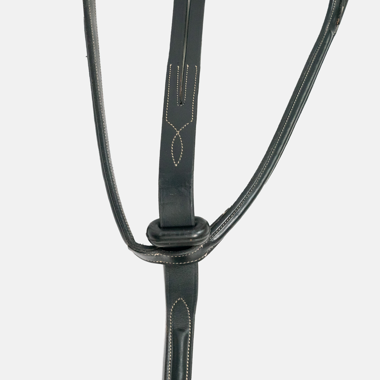 Martingale noir, classique, de la marque renommée Equiline, avec des anneaux et des boucles en acier, ainsi qu'un collier de cou ajustable. Sur le côté gauche se trouve également le logo d'Equline comme un détail élégant et luxueux.