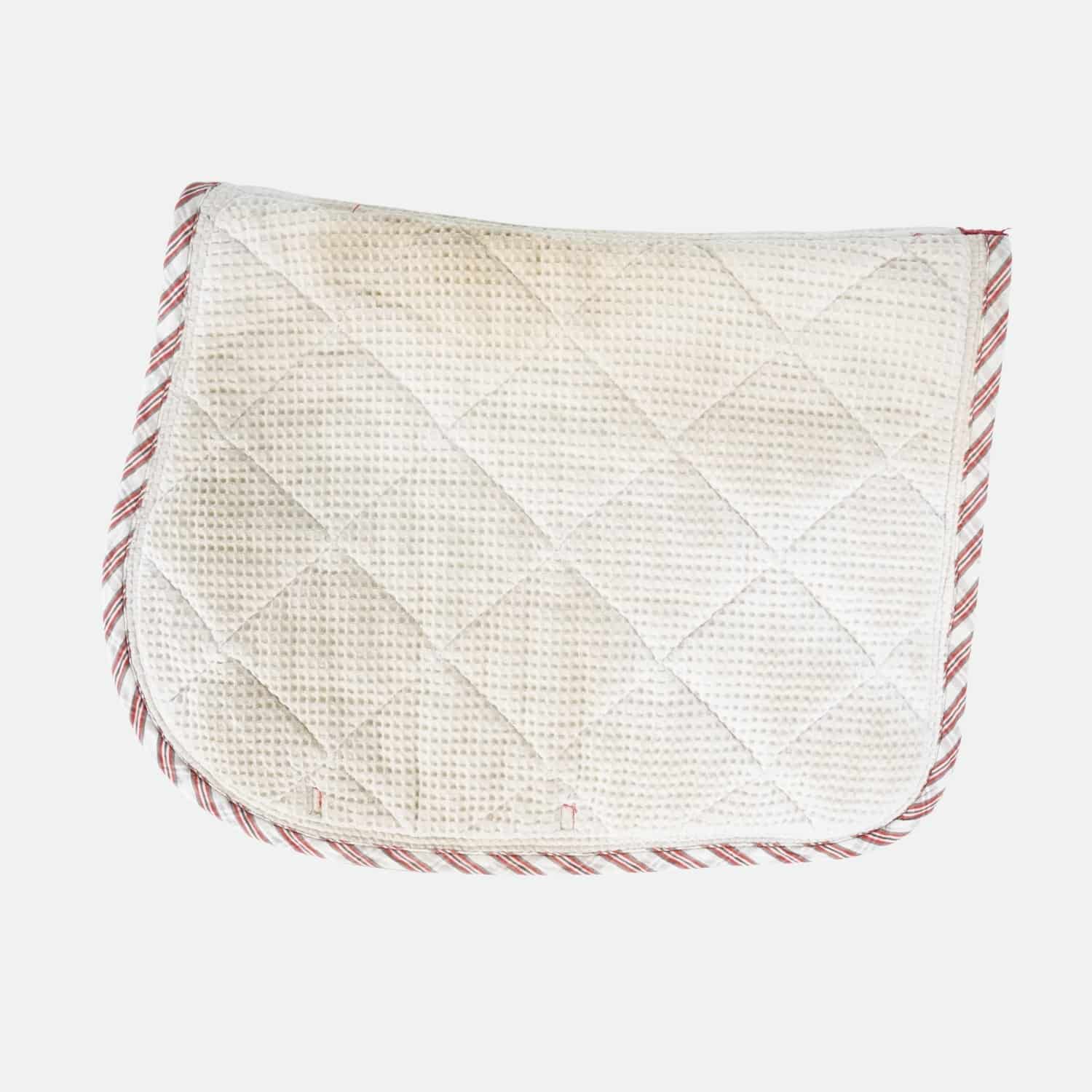 Parfait pour le CSO ou un usage mixte, le matelassage en losanges (diamants d’environ 10 x 10 cm) stabilise le tapis sous la selle et limite les points de pression.