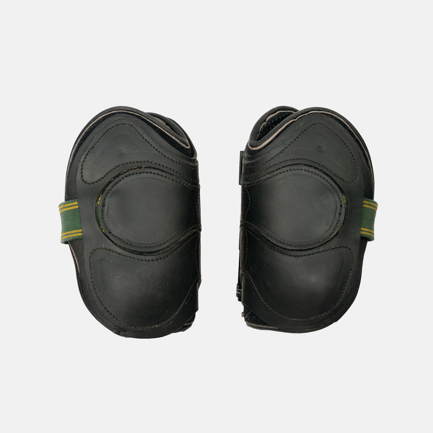 Les protège-boulets MyBoots sont des protections à intérieur amovible. Le cuir gras de la double coque est très résistant et facilite leur entretien. L’intérieur amovible en mousse à mémoire de forme absorbant 96% des chocs est recouvert d’un tissu de fils d’argent aux propriétés antibactériennes. Son système de fermeture à boutons avec 3 crans de réglages assure un ajustement précis sur le membre du cheval.