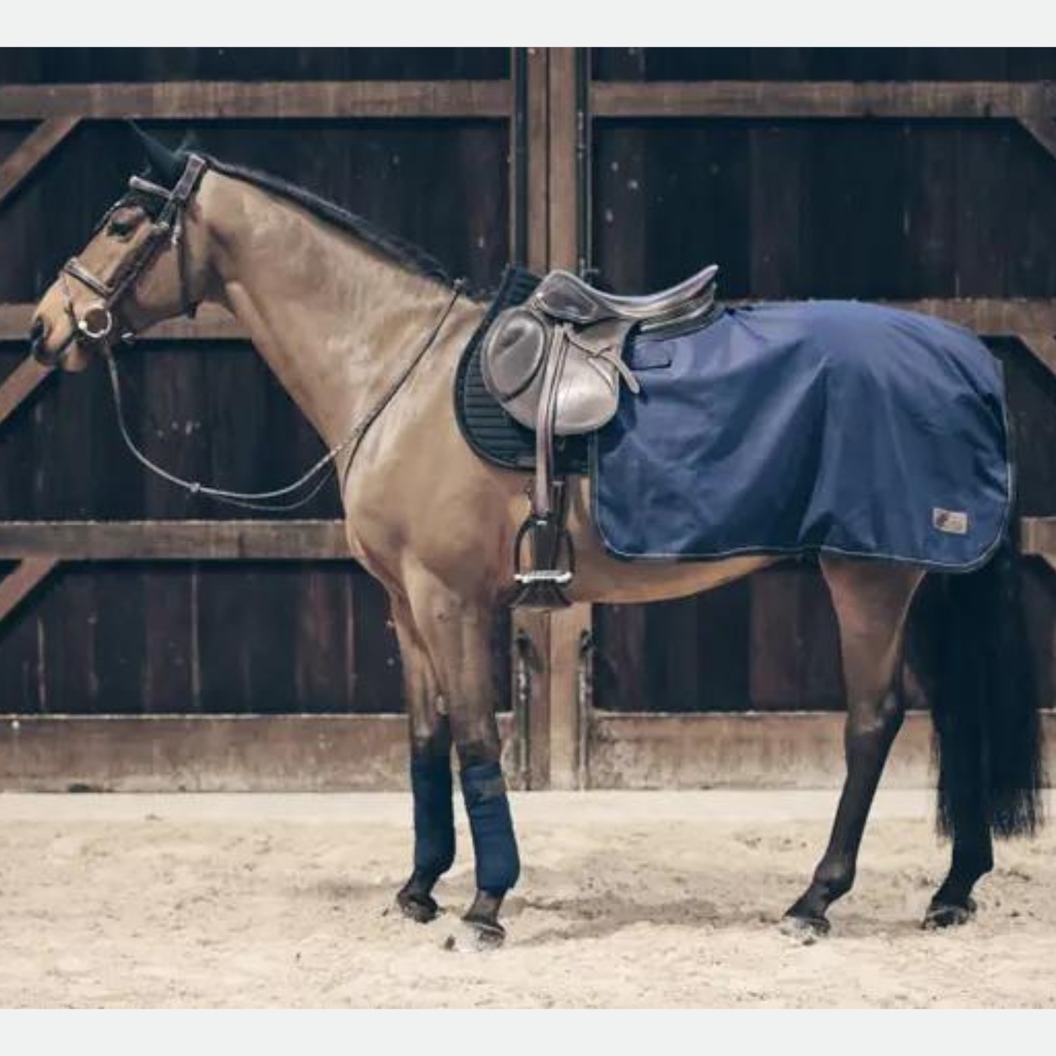 • La Quarter Rug All Weather est une couverture haute performance fabriquée à partir d'un tissu à trois couches. Le tissu extérieur en polyester haute ténacité 600D est laminé avec une membrane imperméable respirante. La doublure en peau de lapin artificielle procure davantage de chaleur, car elle crée de minuscules poches d'air qui retiennent la chaleur du corps. La doublure est très douce contre la peau, lustre le poil du cheval et prévient des frottements et irritations. Le couvre-reins carré comporte deux attaches velcro pour le fixer à la selle, ainsi qu’une courroie de queue. Le passepoil et le logo Kentucky en simili cuir marron donnent au couvre-reins un look très chic. Il est lavable en machine à 30 °, pas de sèche-linge.- Forme carrée