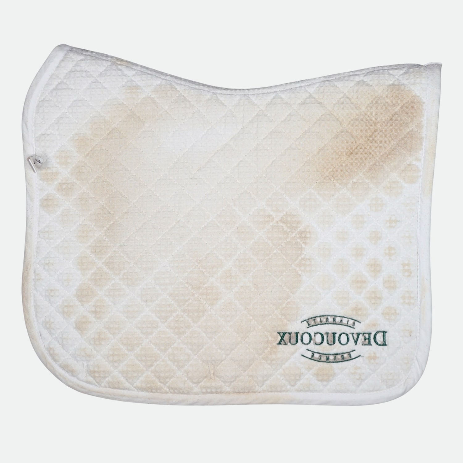 • Le tapis de dressage Blanc collectons devoucoux est un tapis de selle de forme dressage.