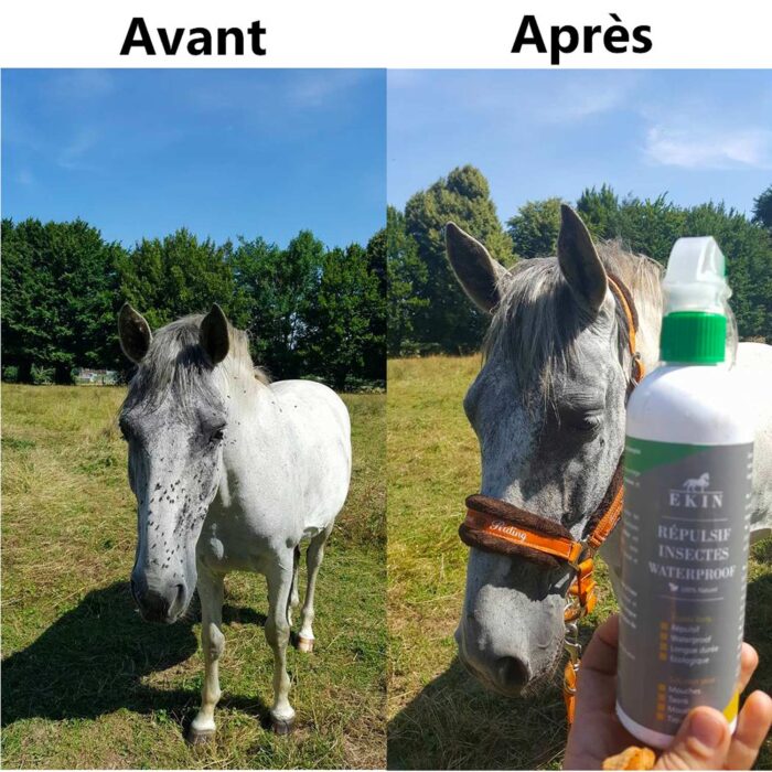 Résistant à la transpiration et à la pluie, ce spray offre une protection durable jusqu’à 48h, idéale pour les chevaux au pré ou travaillant en extérieur.