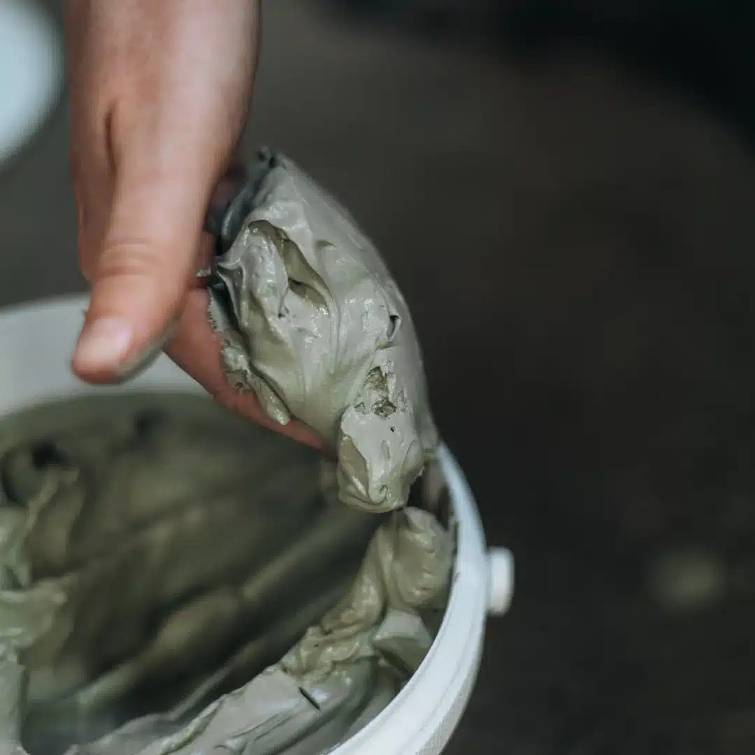 Argile kaolinite : particulièrement douce, adaptée aux zones sensibles ou fragilisées.