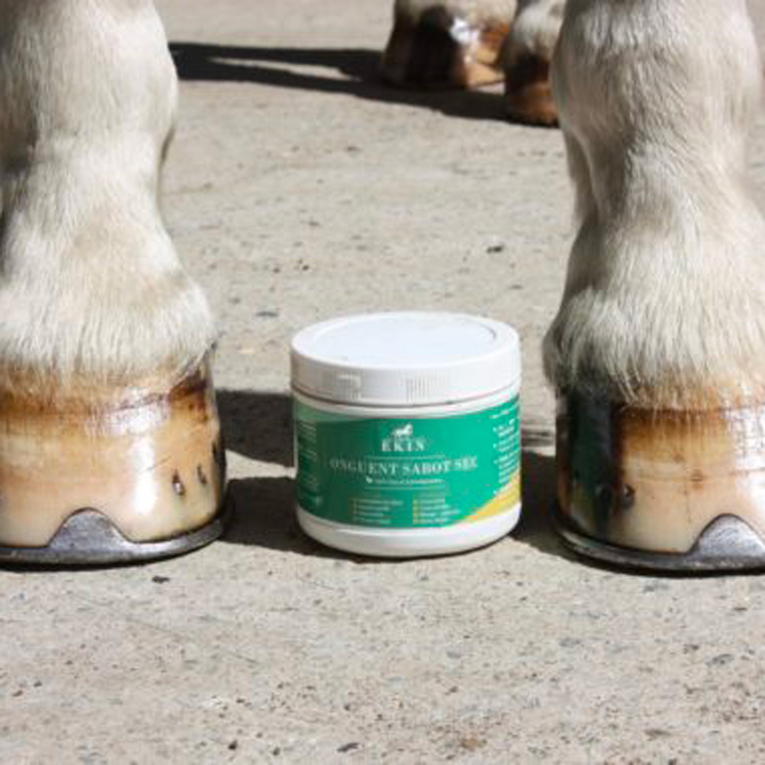 L’Onguent Sabot Sec EKIN est spécialement formulé pour entretenir, protéger et nourrir les sabots soumis à la sécheresse estivale ou à des conditions d’écurie sèches.